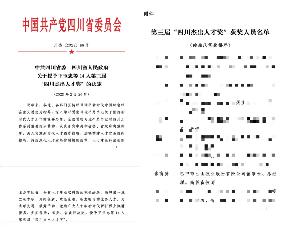 張育賢董事長帶領團隊通過多年孜孜不倦的努力,立足本職、開拓創(chuàng)新、攻堅克難,在青峪豬保種育種中取得了巨大成就。所創(chuàng)立的巴中市巴山牧業(yè)股份有限公司通過多年的努力取得了優(yōu)秀成績,公司探索創(chuàng)新青峪豬“1+3+125”,“政府+金融機構+保險+巴山牧業(yè)+村集體經濟”產村融合鄉(xiāng)村振興項目,帶動125村,實現一村一園、一縣一鏈。 相信在張育賢董事長的帶領下巴山牧業(yè)集團將繼續(xù)奮發(fā)前進,取得更大業(yè)績。